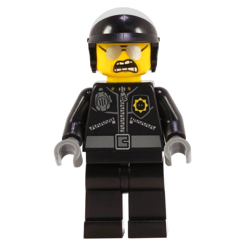 Criminal, Open Black Jacket over Prison Shirt, Dark Bluish Grey Legs, Black Hat, Stubble
