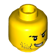 Minifig Head Luke Cunningham / Jack Fury, Beard Stubble, Black Eyebrows, Scar on Right Eyebrow, Open Mouth with Teeth Print [Hollow Stud] | Yellow | 1 | 0 | 0 |