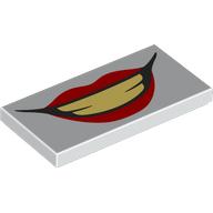 Tile 2 x 4 with Joker Mouth, Red Lips, Tan Teeth print